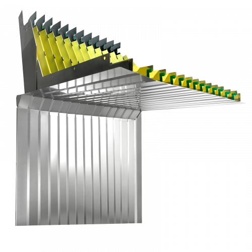 • Ein Flügel an den Blechen sorgt für den Anpressdruck der Bleche