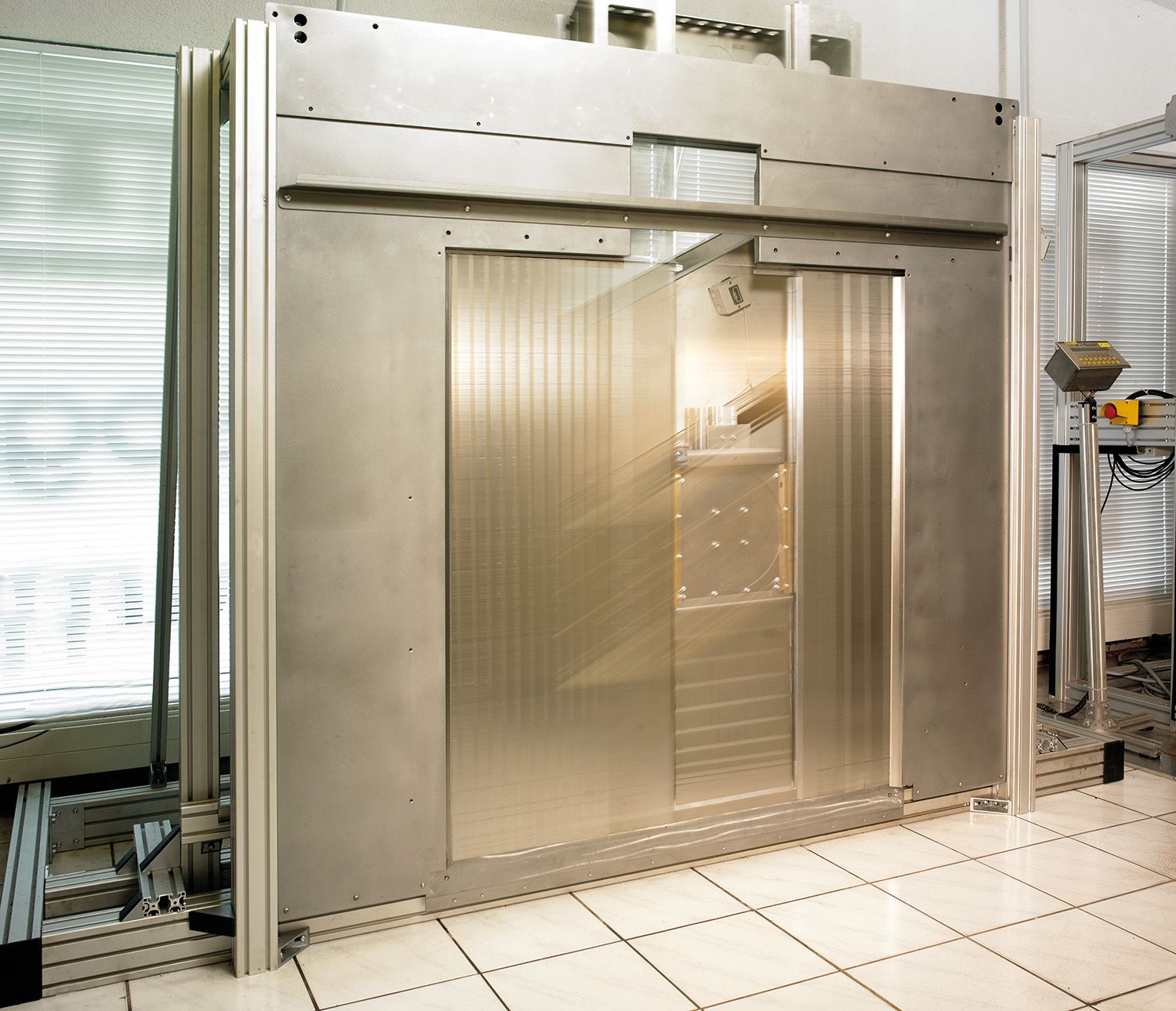 Wir gewährleisten, dass unsere Schutzabdeckungssysteme hohen Anforderungen gerecht werden. Mit aufwändigen Dauertests und spezifischen Simulationsverfahren prüfen wir in unserem eigenen Technologiezentrum das Material, die Flexibilität, die Robustheit und die Verfahrgeschwindigkeiten unter extremsten Bedingungen.